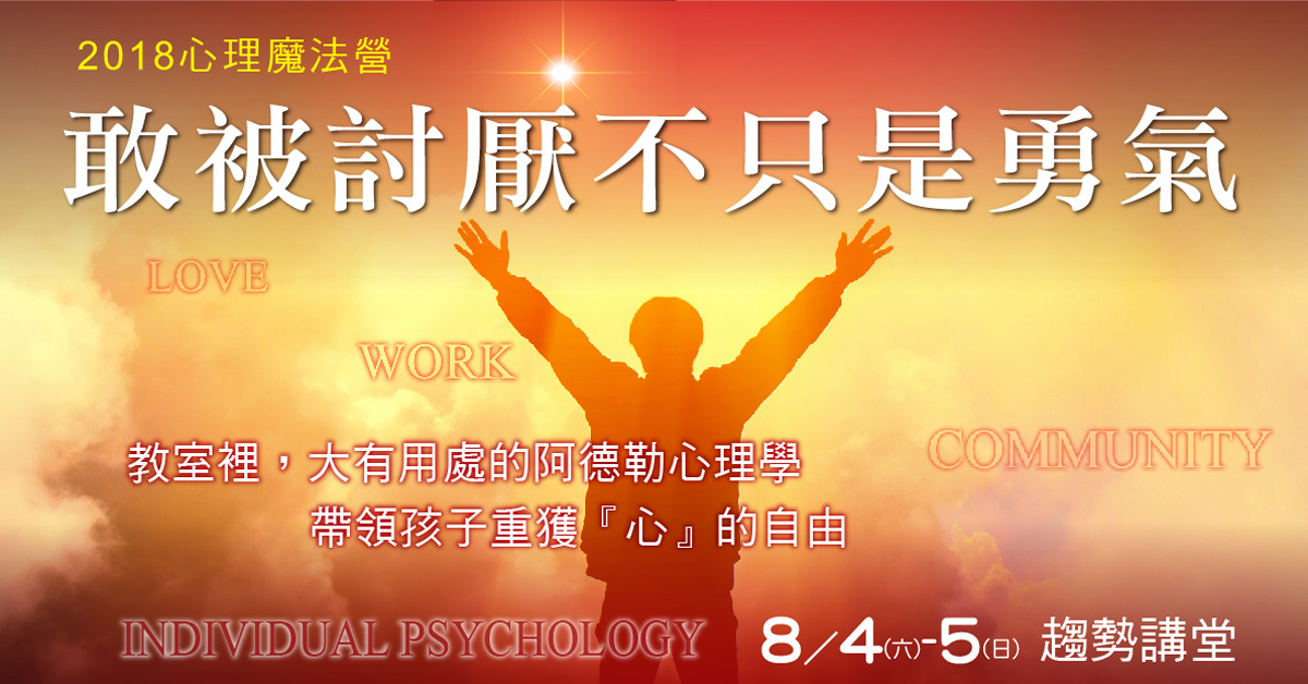 在這次的魔法營,我們秉持著阿德勒的精神,由趨勢教育基金會、華人心理治療研究發展基金會與臺灣阿德勒心理學會共同合作,透過淺顯易懂的方式,將阿德勒心理學實際運用在我們的生活與教養中,讓我們學習割捨,活出自己想要的精彩!