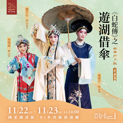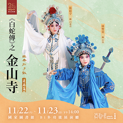 2025年11月22日-23日|真劇場在國圖,以民間四大傳說《白蛇傳》為主軸,為觀眾帶來京劇經典折子戲〈遊湖借傘〉〈金山寺〉,透過嫻雅身段、細膩唱腔和武打橋段,呈現許仙與白蛇白素貞之間,從甜蜜相遇到受法海阻撓強力拆散的愛情悲劇。本場演出由蔣傅宇、張庭宇、劉芷心、林聖晏、何明庭及多位趨勢之星擔綱,集結完整生、旦、凈、丑各行當演員,聯手呈現。
